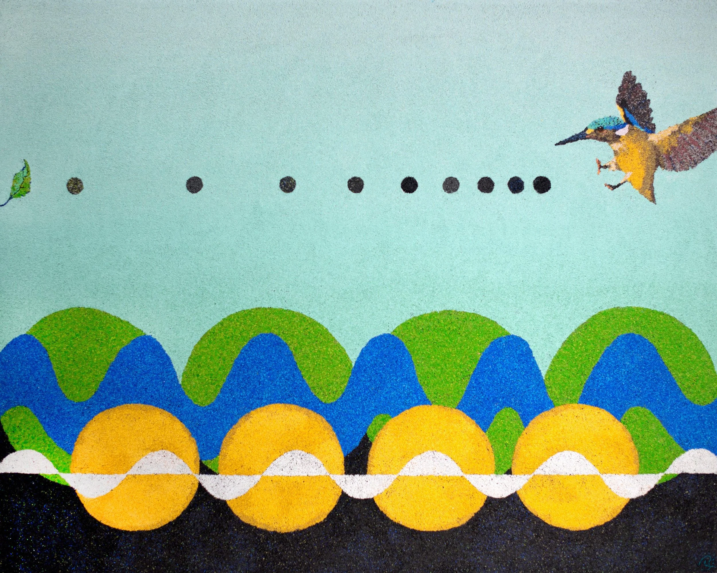 The airborne sounds depicted in the body of work “Florum Somnia” are the ultrasonic pops and crackles that stressed or dehydrated plants make to communicate their distress. “Florum Somnia” — which translates to “plants dreaming” — makes one wonder what else we have been missing as we plod along our well-worn paths, oblivious to the flowers releasing nectar when they “hear” the sound of a hovering bee or the traumatized wail of an anemone yearning for water. “Florum Somnia” is an abstract, imaginative rendering of a scientific reality.